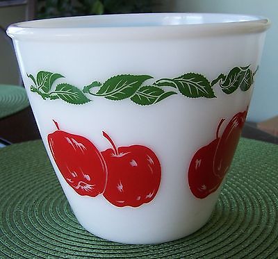 VINTAGE MILK GLASS MIXING BOWL RED APPLES GRREN LEAVES 6"