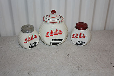 VINTAGE ANCHOR HOCKING MILK GLASS PEPPER, SUGAR & GREASE JAR TULIP DESIGN