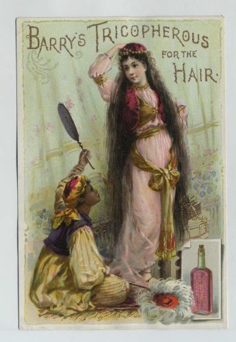1800's Barry's Tricopherous For Hair Advertising Trade Card Woman Servant cv1992