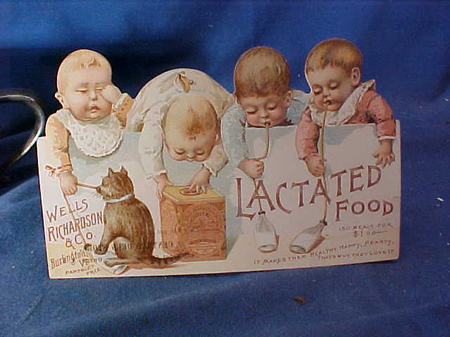 Title (ebay affiliate link): 19thc LACTATED BABY FOOD Advertising TRADE CARD Diecut BABIES w CAT Design