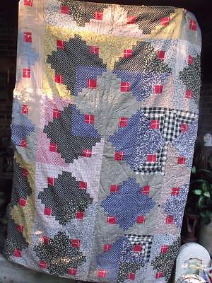 Title (ebay affiliate link): Sweet Primitive Vintage Hand Made Quilt Reds and Blues 80X50"