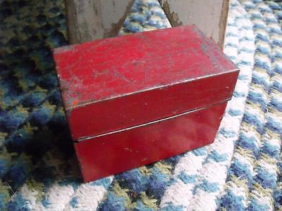 Primitive Vintage Tin Recipe Box Shabby Red Paint With Recipe Favorites Inside