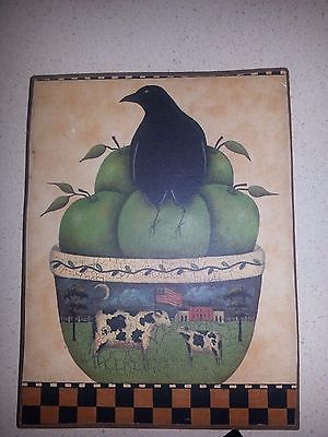 Title (ebay affiliate link): PRIMITIVE WOOD WALL DECORATION WITH CROW GREEN BLACK COW CHECKERBOARD