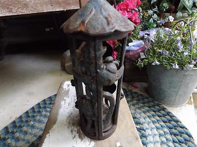 Rustic Rusty Primitive Vintage Cast Iron Hanging Garden Candle Lantern