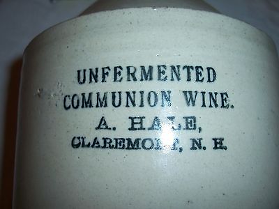 Antique Stoneware Jug Claremont NH Communion Wine Advertising Religious Church