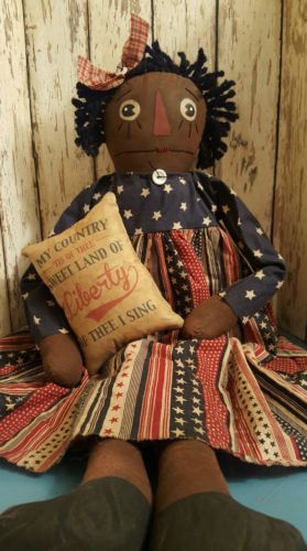 Title (ebay affiliate link): Primitive Black Americana Raggedy Ann w/ USA Pillow Ornie
