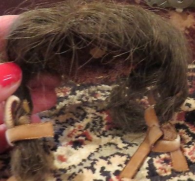 #208 6" Antique Human Hair Wig w/Pigtails for Antique Bisque Doll