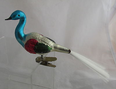 Antique Clip Glass Christmas Tree Ornament Figural Blue Bird w/Spun Glass Tail
