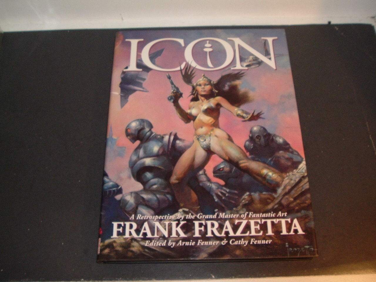 Title (ebay affiliate link): ICON: A RETROSPECTIVE OF FANTASTIC ART BY FRANK FRAZETTA HC DJ BOOK-1st Editon