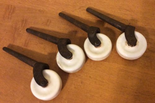 Title (ebay affiliate link): Antique Lot (4 ) White Porcelain Wheels Casters Cast Iron Castor Old Furniture