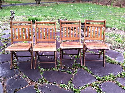 Vintage Folding Wood Slat Church Chairs Set of 4
