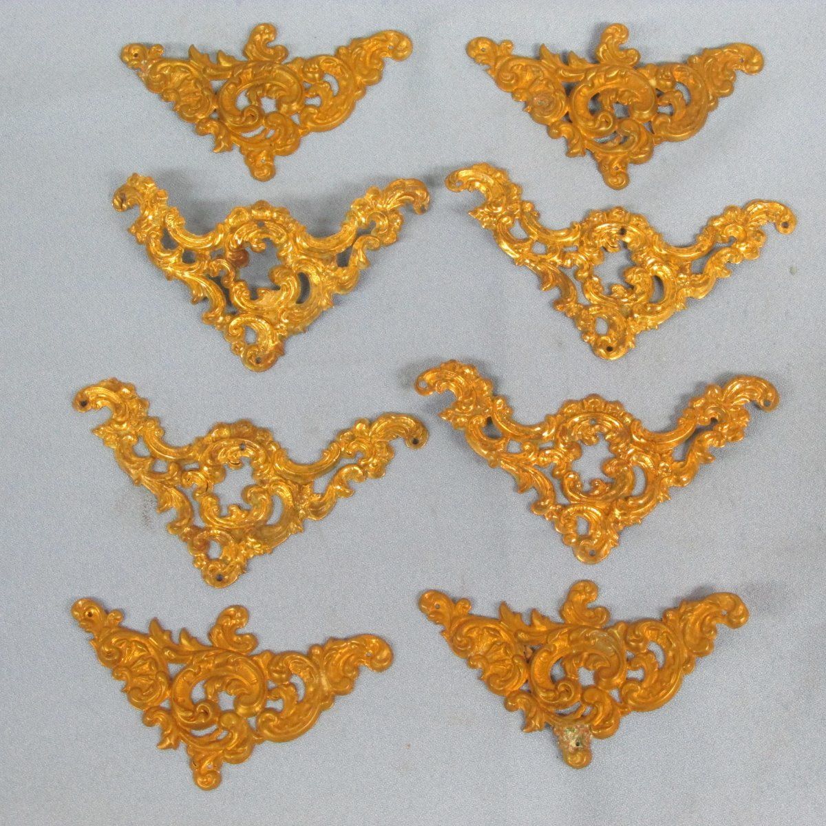 Title (ebay affiliate link): Lot of 8 Antique Vtg Metal Appliques Hardware for Furniture Clocks Salvage