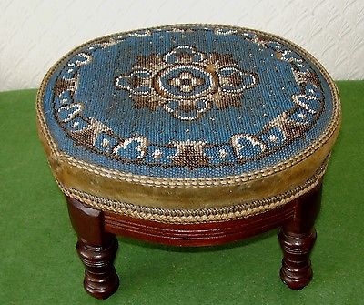 Title (ebay affiliate link): ANTIQUE MAHOGANY STOOL SUPERB HAND EMBROIDERED BEADWORK CUSHION TOP circa 1890