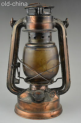 9.8inch china Collectible Handwork Old copper used decorate lighting oil lamp