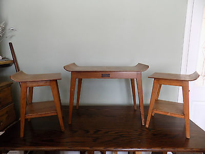 VINTAGE~REMPLOY~NEST OF 3 OCCASIONAL TABLES~1950'S~TEAK?~HAS PRESENTATION PLAQUE