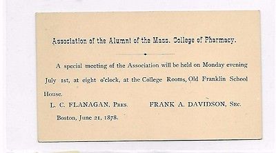Title (ebay affiliate link): UX5 Postal Card 1878 Association of the Alumni of the Mass. College of Pharmacy