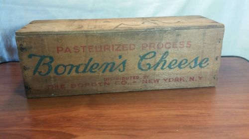 Title (ebay affiliate link): BARN FIND VINTAGE WOODEN ADVERTISING BOX BORDEN CHEESE CRATE WWII ERA 1940s