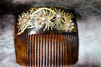 Title (ebay affiliate link): Antique Faux Tortoise Shell 18k Gold Hair Comb with Pearls and Many Stones