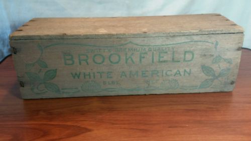 Title (ebay affiliate link): BARN FIND VINTAGE WOODEN ADVERTISING BOX BROOKFIELD CHEESE CRATE WWII ERA 1940s