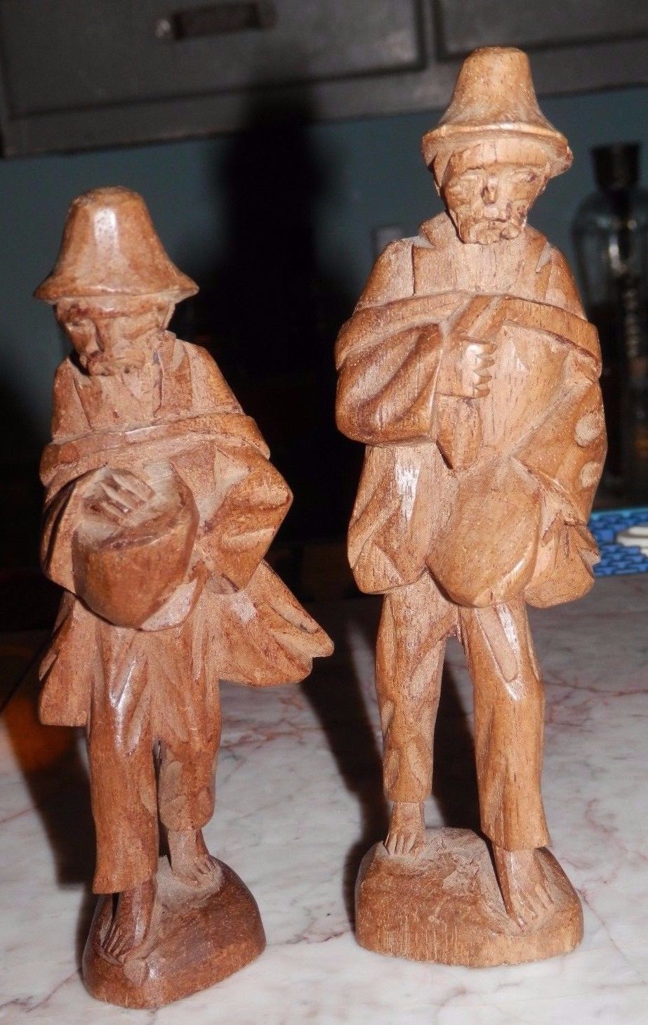 Title (ebay affiliate link): Vintage Hand Carved Pair of Men in Hats with Bags Sacks 6" Wood Carving Figures