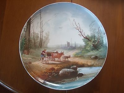antique French 19th large Limoges PLATE 1900 - farm Landscape - COW GOAT SHEEP