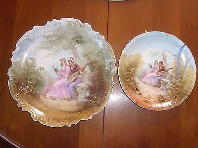 ANTIQUE French PAIR 19th BIG Limoges PLATE 1900 DECOR LOVERS 18TH