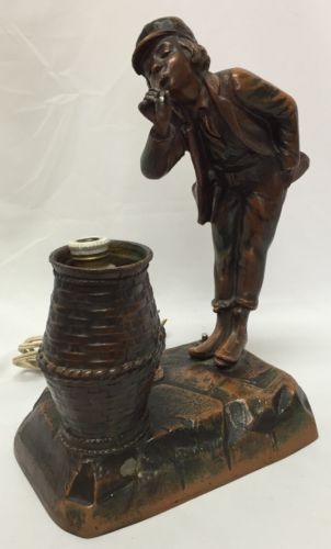 Antique Pipe Smoking Boy Bronze Metal Lamp