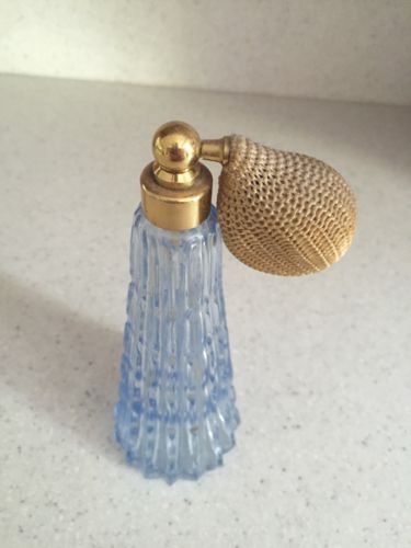 Vintage Elegant Crystal Blue Glass ATOMIZER PERFUME BOTTLE