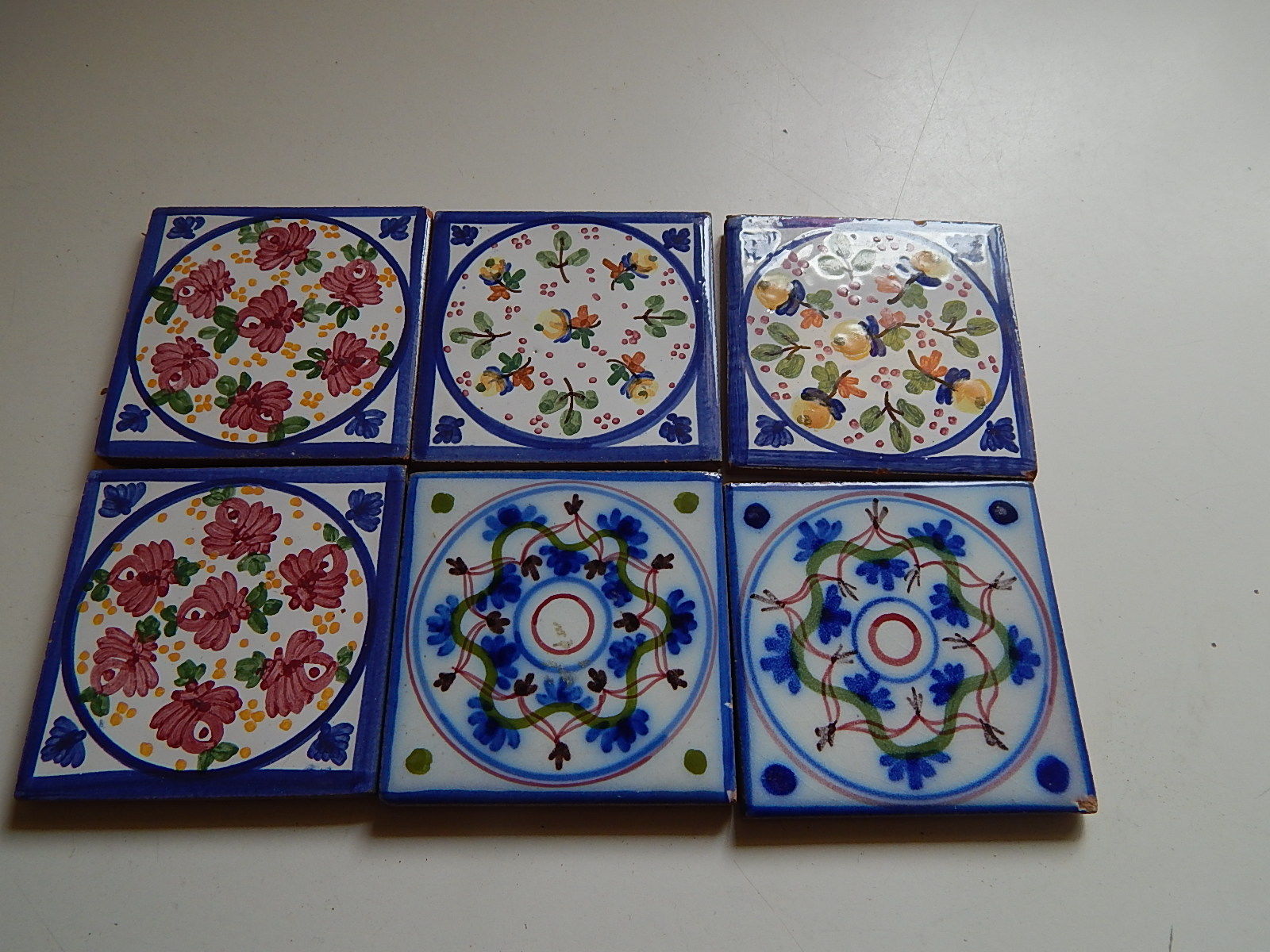 Vintage Lot of Adorable Tiles Hand Painted Made in Spain 2 7/8"