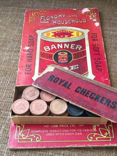 Title (ebay affiliate link): Vintage early 1900s Banner Lye Advertising Checkerboard/checkers- Philadelphia.