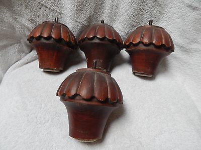 Vintage Lot 4 Antique Furniture Scallop Wood feet Screw type 4 inches tall