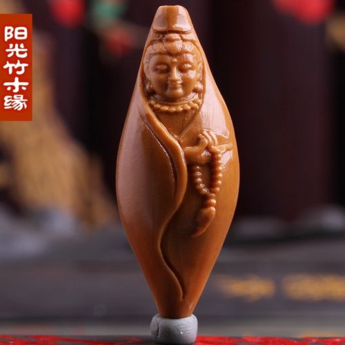 Title (ebay affiliate link): Olive Nut Carved Chinese Kwan Yin Statue Pendant Key Chain Cell Strap Charm W573