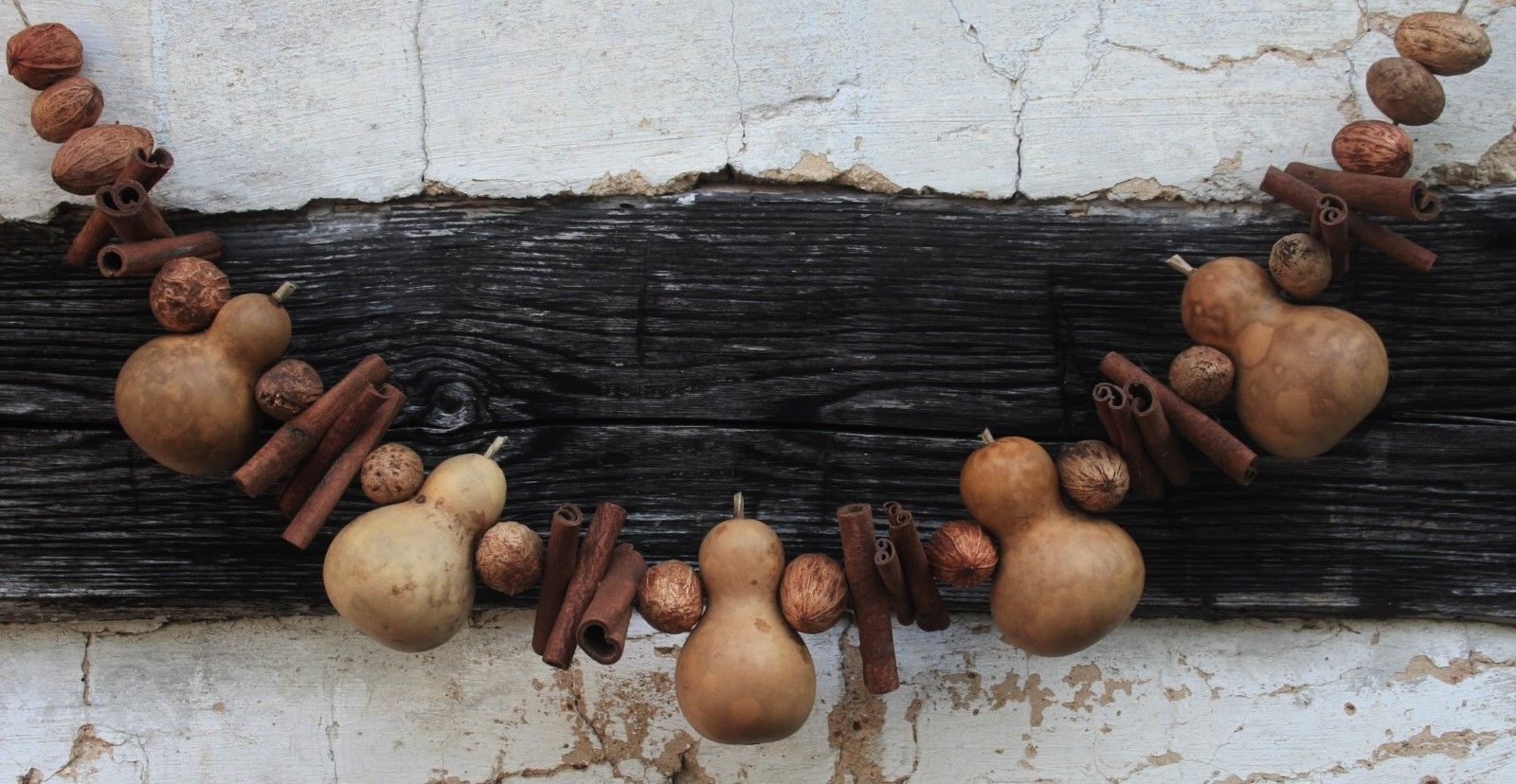 PRIMITIVE GOURD NUT & CINNAMON GARLAND * NATURAL GARDEN COLONIAL FARMHOUSE