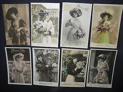 Estate 8 c1900 Color Photo Edwardian French Ladies in HATS Furs Paris Postcards