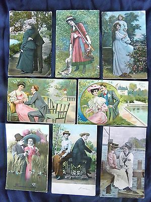 Estate 8 x 1900 Color Photo Illustrated Edwardian Couple French Tucks Postcards