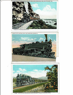 3 Card Lot, Railroad, Locomotives, Santa Fe-Calif., Penn. Railroad, S. Pacific!