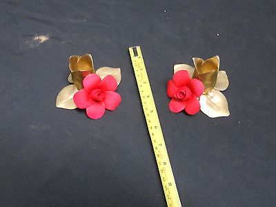LOT OF 2 CAPODIMONTE RED ROSE PORCELAIN CANDLE HOLDERS made in ITALY