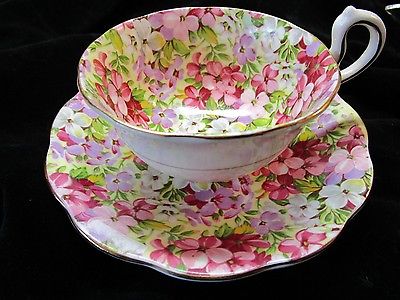 Title (ebay affiliate link): ROYAL STANDARD Virginia Stock Pink CHINTZ Fine Bone China Teacup and Saucer