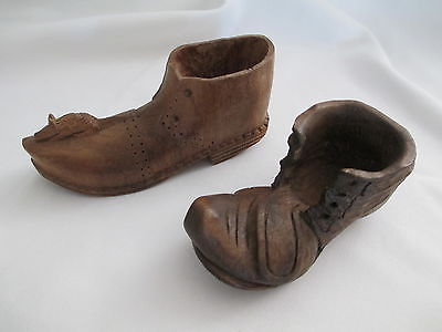 Pair TRAMP or FOLK ART Handcarved Wood Shoes HOBO & SPECTATOR w Mouse !