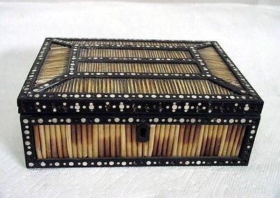 Title (ebay affiliate link): ANTIQUE INLAID ANGLO CEYLONESE EBONY & PORCUPINE QUILL MATARA COVERED BOX