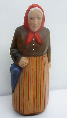 Vintage SCHMID-LINDER 6" Hand-Painted Carved Wood Figure ~ Woman With Umbrella