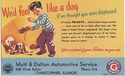 Title (ebay affiliate link): CHRISTOPHER ILLINOIS - MATT & DALTON AUTOMOBILE SERVICE AD / 1950s - PONTIAC