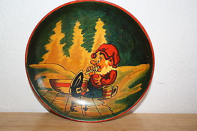 ANTIQUE GNOME FOLK ART WOODEN BOWL HANG ON WALL