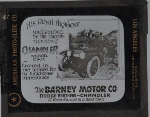 c1920s Magic Lantern Slide Chandler Motor Car The Barney Motor Car Co Gilroy Cal