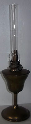 VINTAGE BRASS OIL LAMP WITH GLASS CHIMNEY