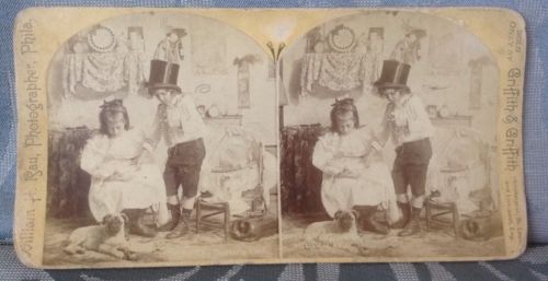 Title (ebay affiliate link): Antique Victorian Children Play Doctor Doll Top Hat Dog Pug Stereoview