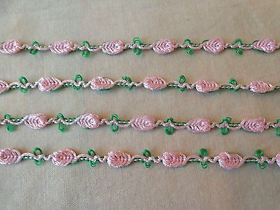 4 yards 1/4" Vintage Pink & Green Rosette Ribbon Work Trim Rococo ~ Doll