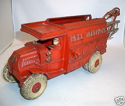 Title (ebay affiliate link): Antique Hubley RED Cast Iron Bell Telephone Truck with Ladders