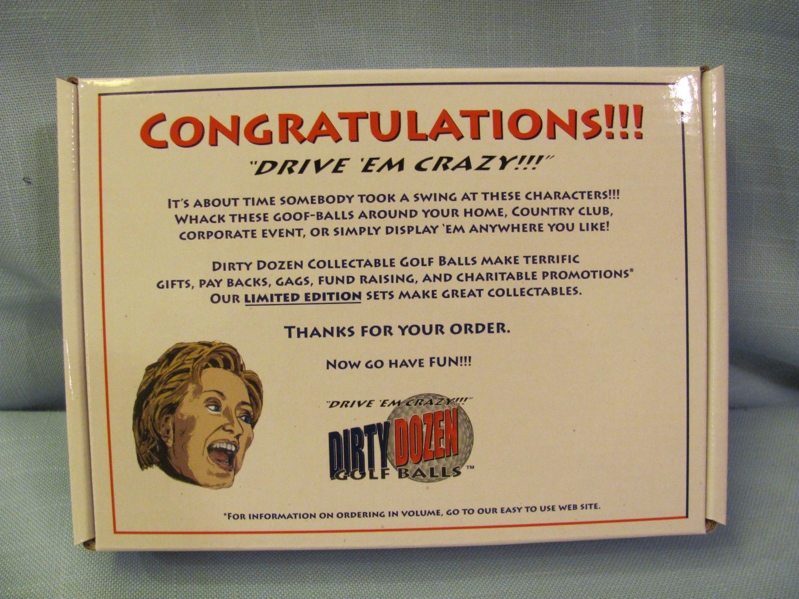 Title (ebay affiliate link): DIRTY DOZEN GOLF BALLS Democrat Edition Political Figures New in Original Box