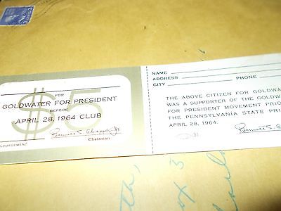 Title (ebay affiliate link): VINTAGE POLITICAL PRESIDENTIAL GOLDWATER FUNDRAISER TICKET 1964